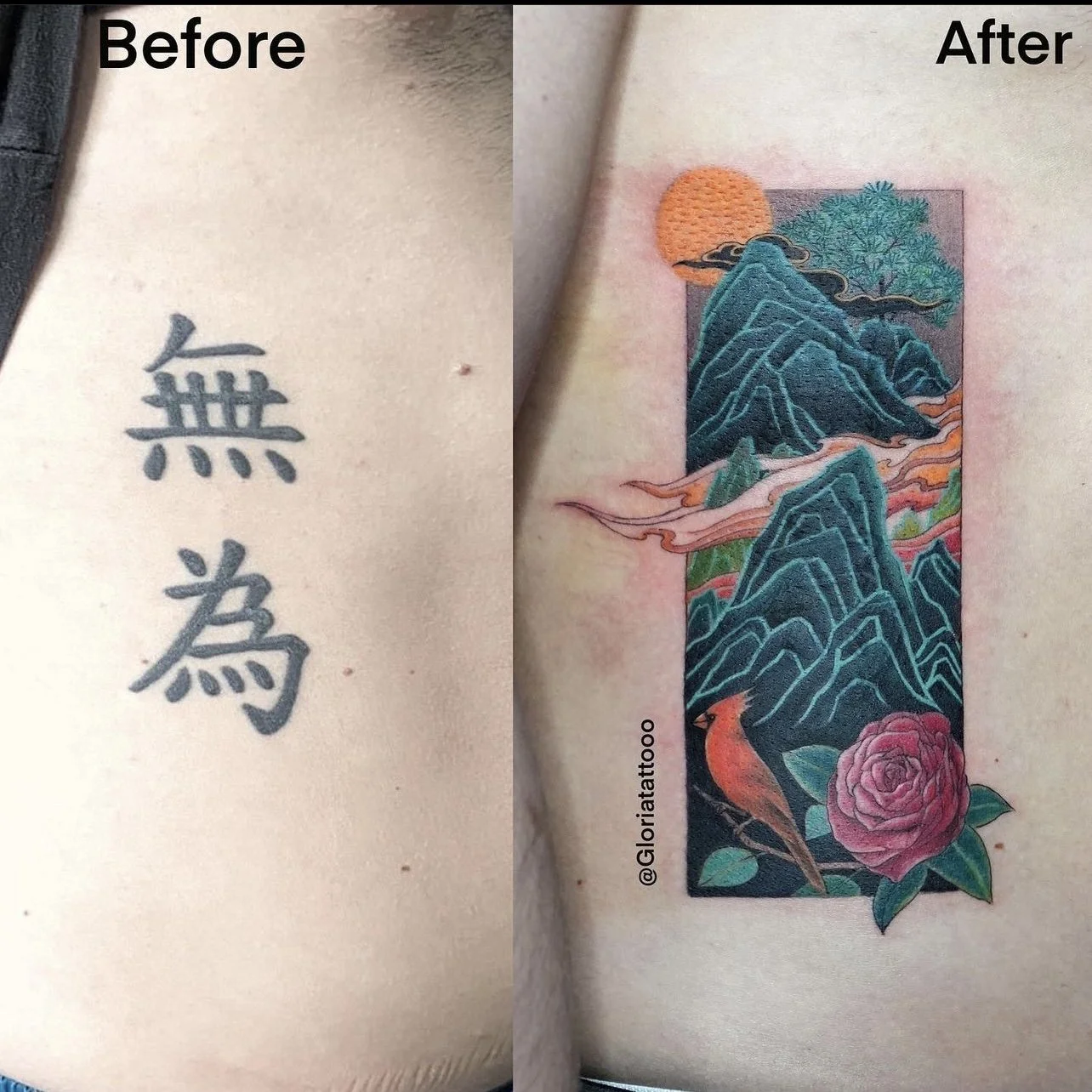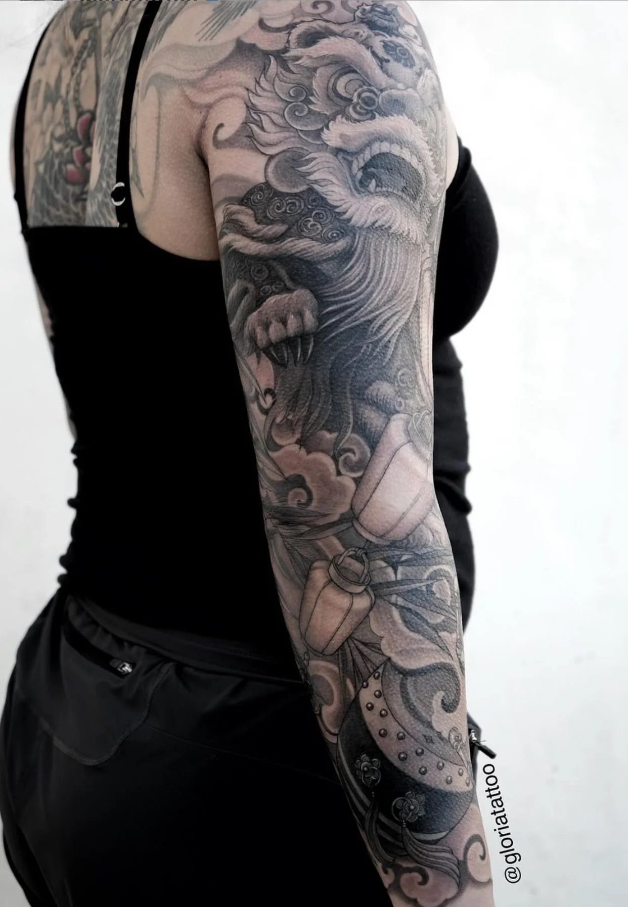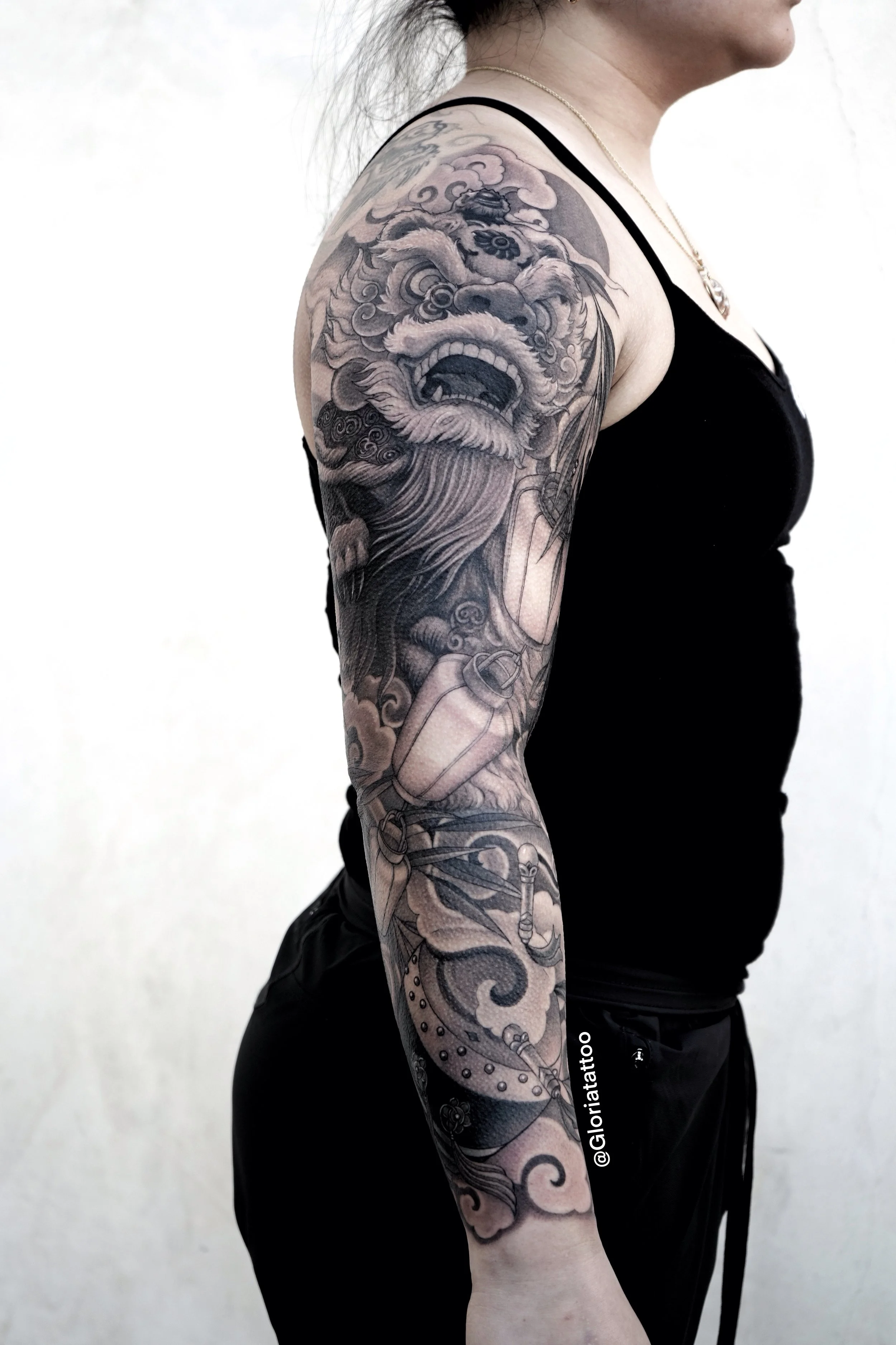 Gloria graduated from Shandong University of Arts, Decoration and Design, where she studied many of China's meticulous paintings of beautiful women.In 2002, she quit her job as an advertising design director to assist Hailin Fu with his tattoo studio. The two co-founded the Fire Hall tattoo agency in Shandong, and she began to concentrate on learning and engaging with the tattoo industry and improving her own abilities.